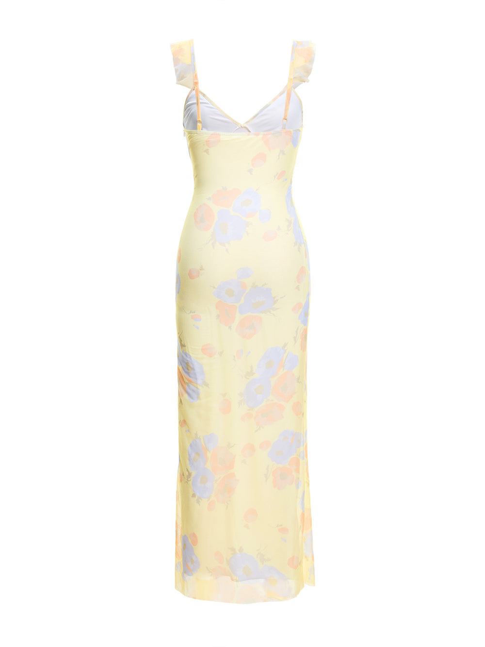 V Hals Boho ärmellose ausgewirkte Midi -Kleider